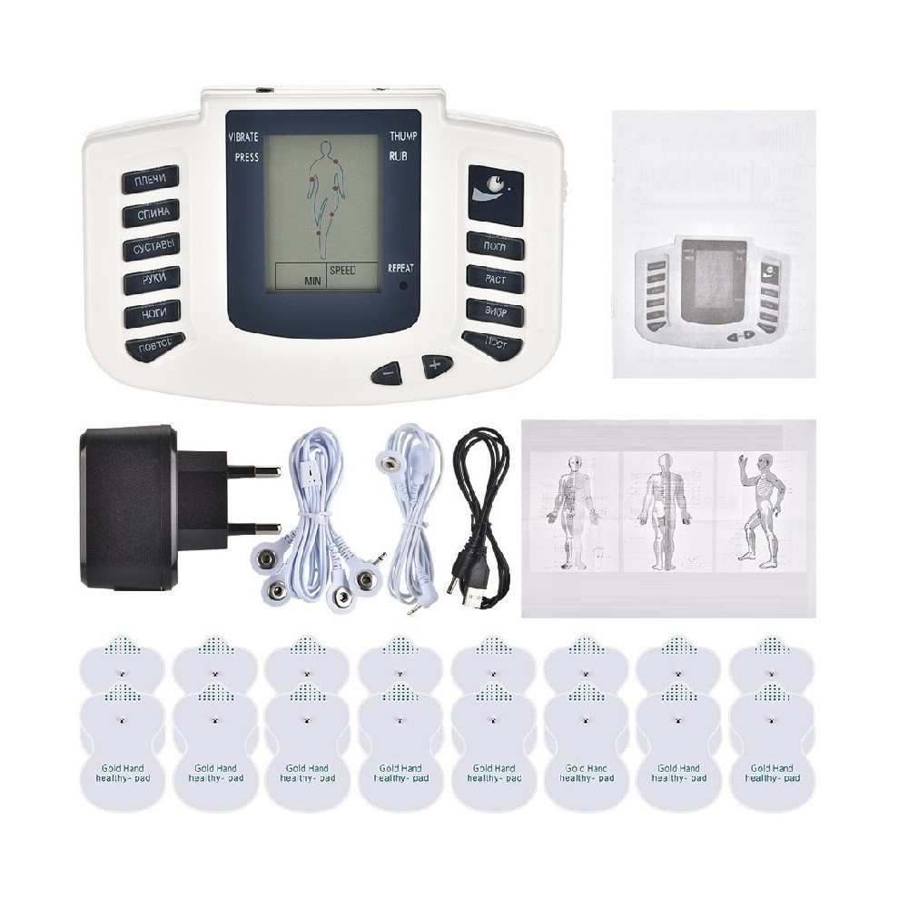 Περιεχόμενα συσκευασίας: 1x ηλεκτροδιεγερτής, 16x ηλεκτρονική επιφάνεια, 1x καλώδιο ηλεκτροδίου, 1x προσαρμογέας ΕΕ, 1x καλώδιο φόρτισης