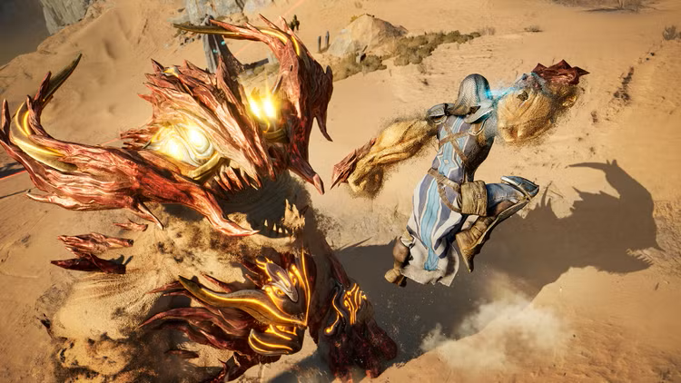 Γλιστρήστε στην άμμο μιας διαχρονικής γης γεμάτης αρχαίους κινδύνους, μυστικά και θραύσματα του παρελθόντος. Κυνηγήστε θρυλικά τέρατα χρησιμοποιώντας ισχυρά, μεταμορφώσιμα όπλα και καταστροφικές ικανότητες που τροφοδοτούνται από άμμο σε μια μεγαλοπρεπή, υπερδύναμη μάχη.