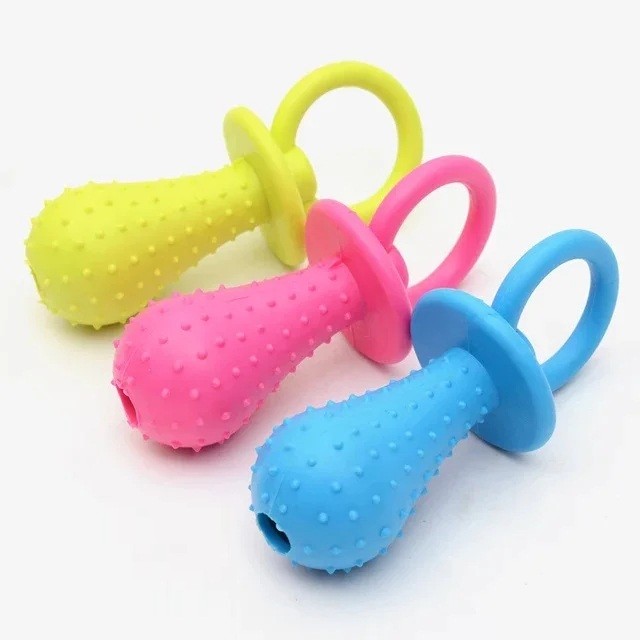 Γαλάζιο παιχνίδι σκύλου από καουτσούκ σε σχήμα πιπίλας με μασάζ, εκπαίδευση, μάσηση, καθαρισμό δοντιών 9,5 εκ. 1 τμχ τυχαίο χρώμα ροζ μπλε κίτρινο