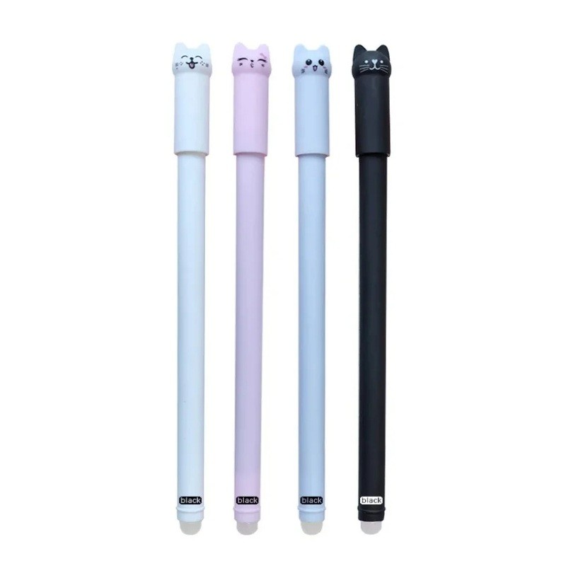 Γραφίδα με σχέδιο γάτας 4 τεμ 0,5 mm Μαγική μαύρη μελάνη Διαγραφόμενη γέμιση Πλενόμενη λαβή Δημιουργικά είδη γραφής για το σχολείο