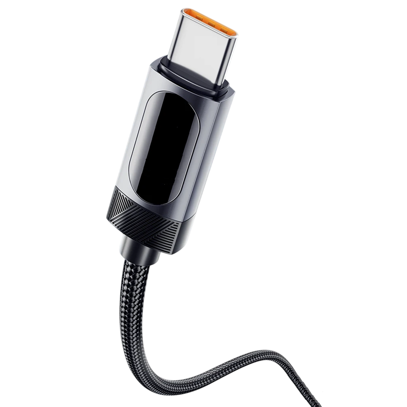 Ανθεκτικό καλώδιο με βύσματα USB C και USB A, υποστήριξη γρήγορης φόρτισης 100W, LED οθόνη και υψηλής ταχύτητας μεταφορά δεδομένων έως 480 Mbps. Πλήρης περιγραφή
