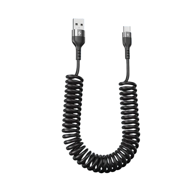 1× ελαστικός USB A – USB C γρήγορος φορτιστής αυτοκινήτου, μαύρος, μήκος 2 m (μέγιστο τέντωμα 2 m)