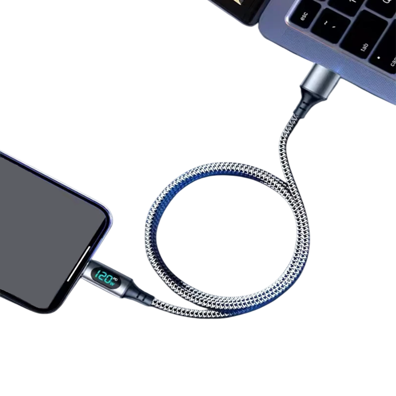 Ανθεκτικό nylon καλώδιο 2 μ με LED οθόνη, υποστήριξη 120W και 6A. Εμφανίζει τάση και ρεύμα, μεταφέρει δεδομένα με ταχύτητα 480 Mbps, ιδανικό για καθημερινή χρήση. Πλήρης περιγραφή