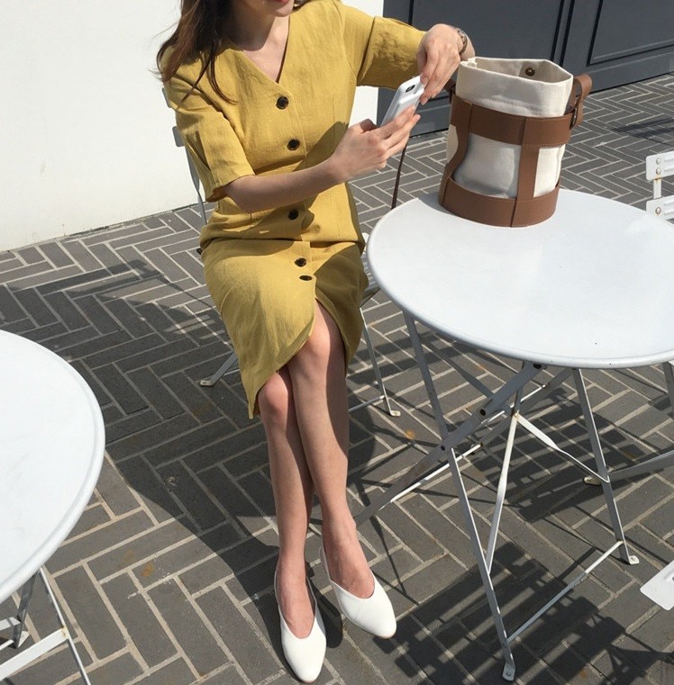Βαμβακερή ανοιχτή φόρεμα κάτω από το γόνατο.