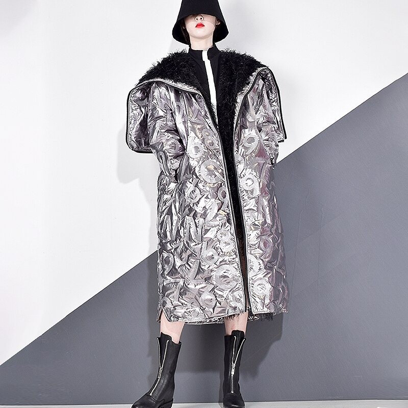 Γυναικεία χειμερινή μπουφάν ασημί