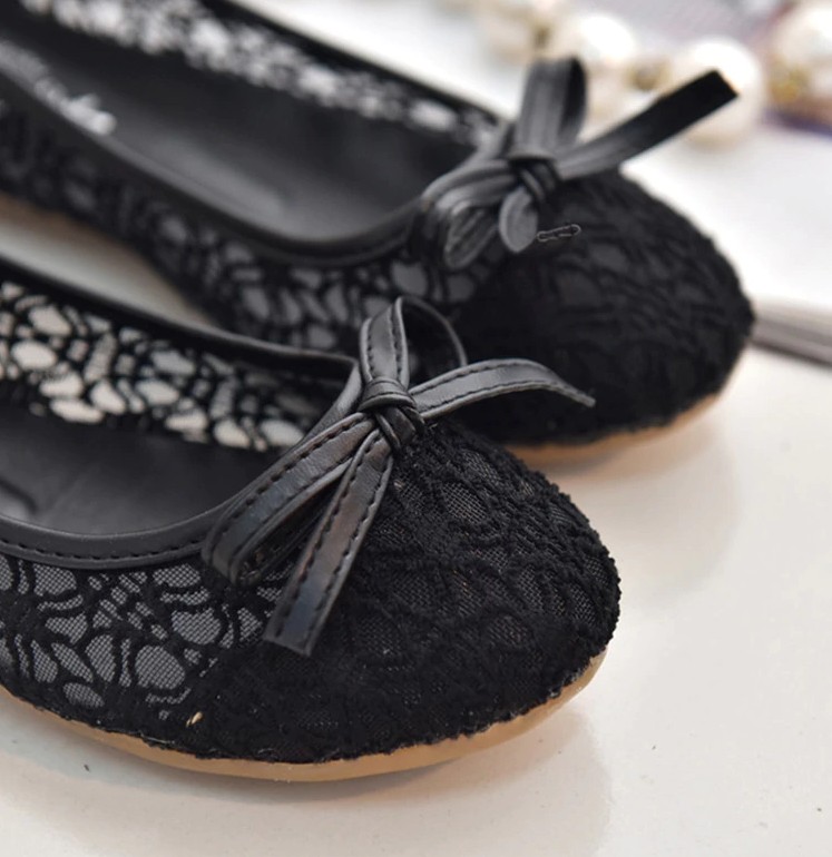 Γυναικεία δαντελένια μπαλαρίνα με φιόγκο J1115