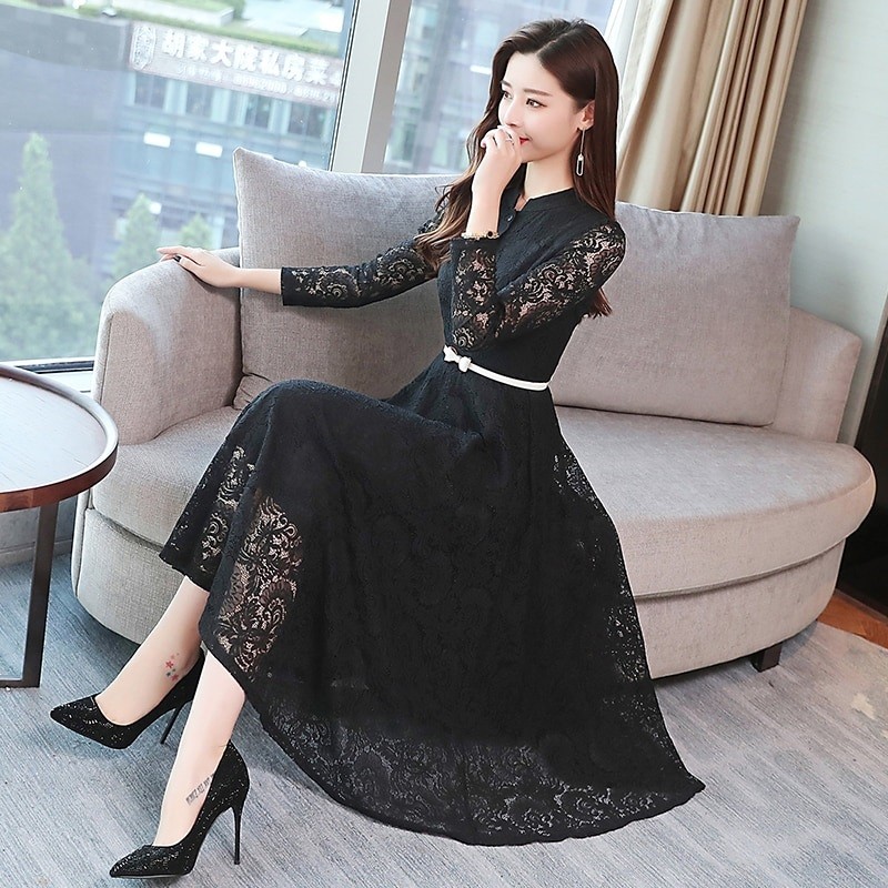 Κομψό γυναικείο φόρεμα με μακριά μανίκια.