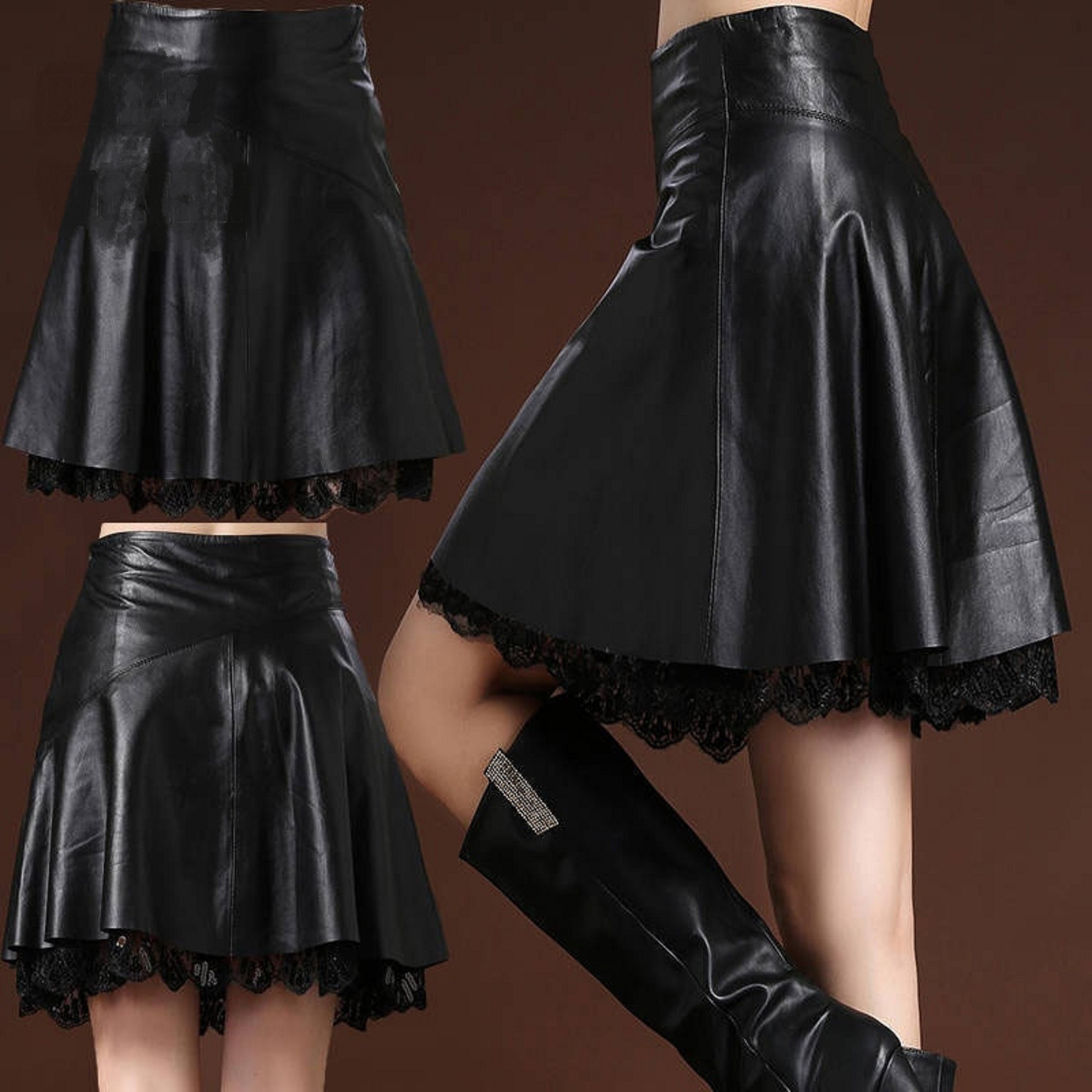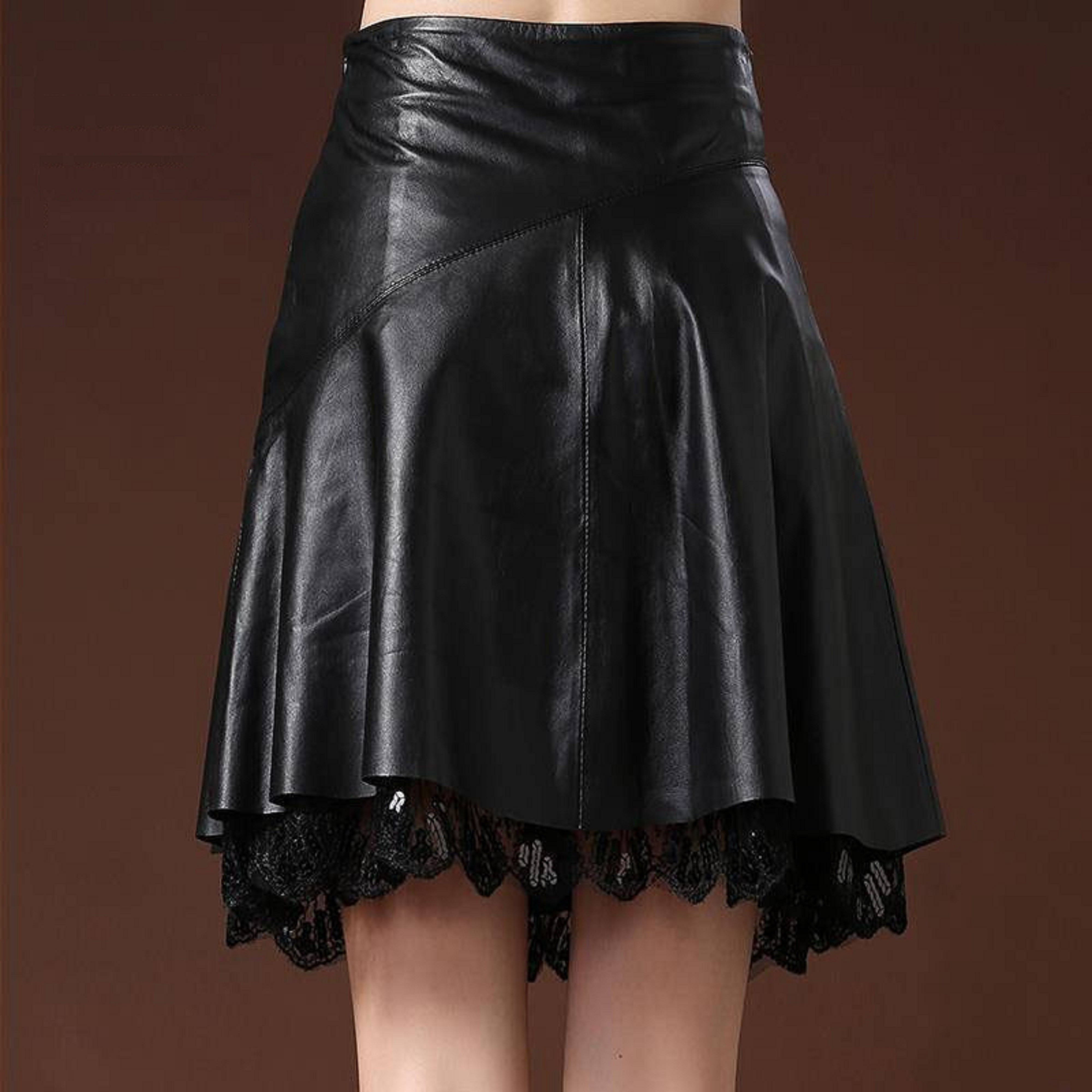 Γυναικεία δερμάτινη φούστα με δαντέλα
