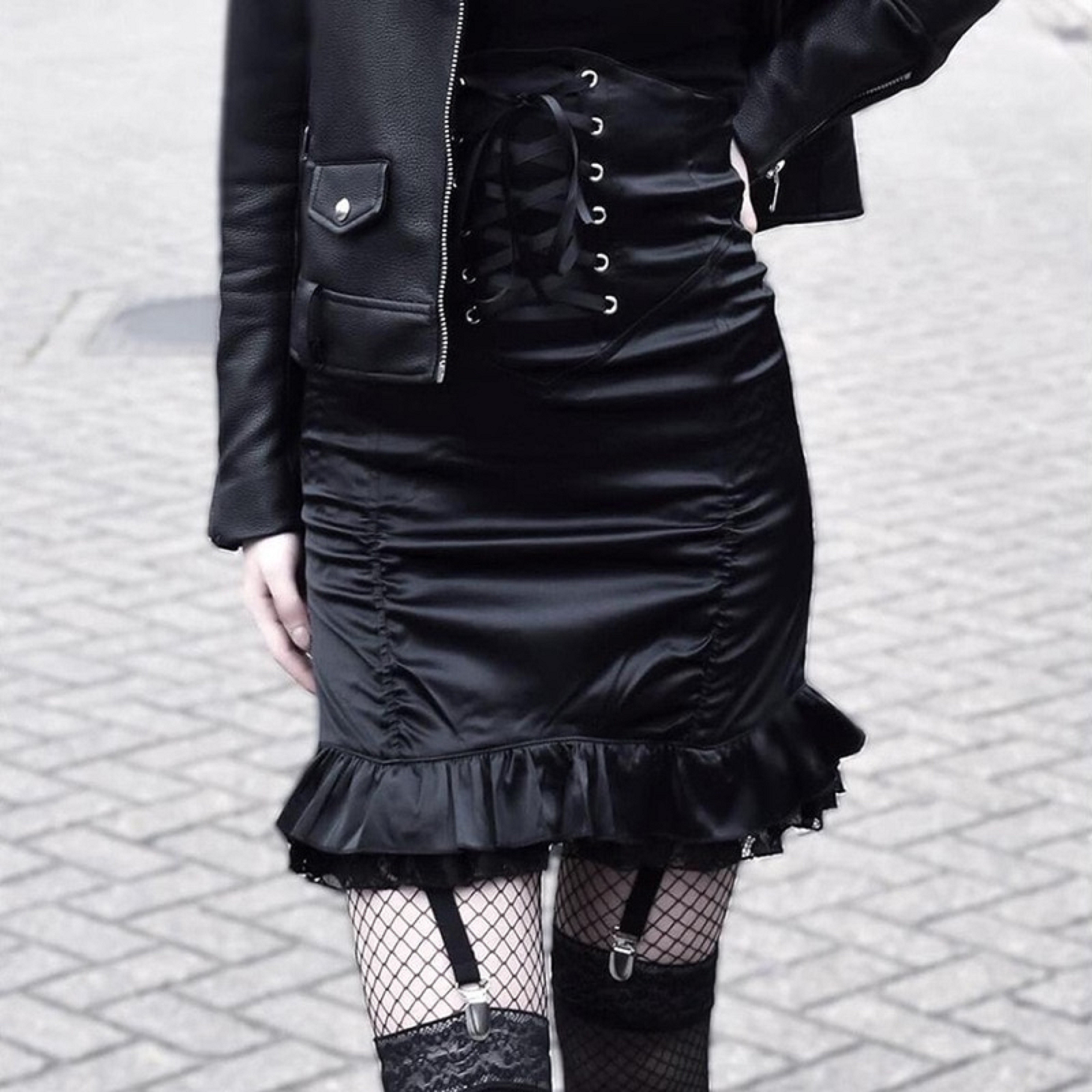 Γυναικεία δερμάτινη φούστα με κορδόνια
