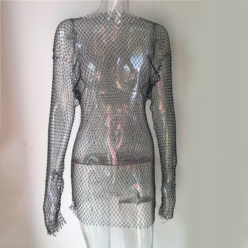 Γυναικεία μίνι φορέματα με μακριά μανίκια από δικτυωτό υλικό.