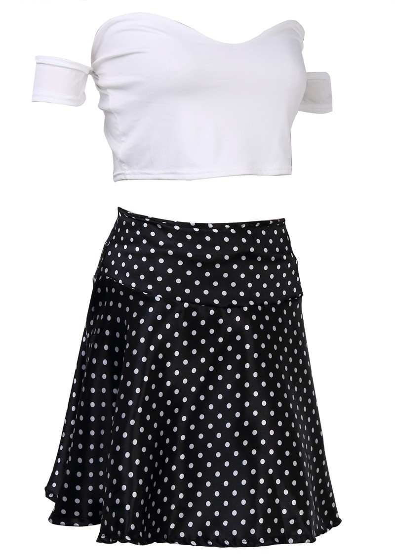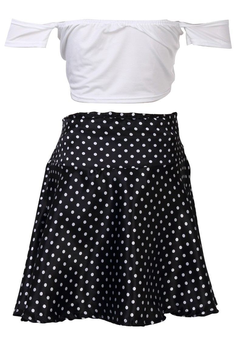 Ρομαντικό διπλό φόρεμα - μίνι φούστα με ψηλή μέση + τοπ με κρεμασμένα μανίκια.