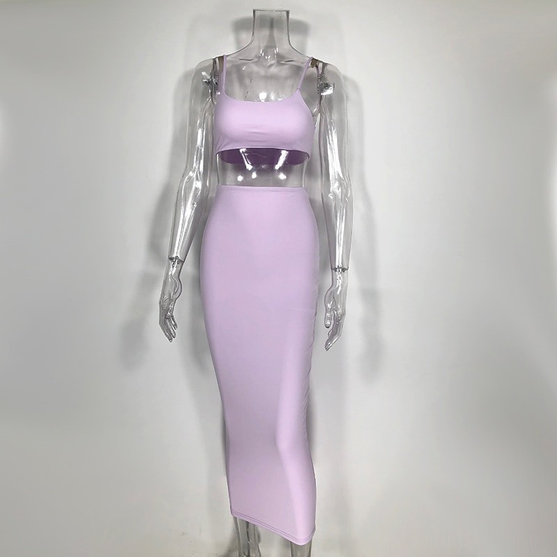 Καλοκαιρινό φόρεμα που αποτελείται από μακριά φούστα και μίνι τοπ.