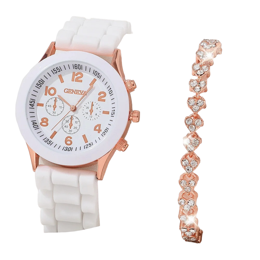 • Ποικιλία αξεσουάρ: Αυτό το σετ περιλαμβάνει ρολόι και βραχιόλι, προσφέροντας ολοκληρωμένα κοσμήματα για διάφορες περιστάσεις.