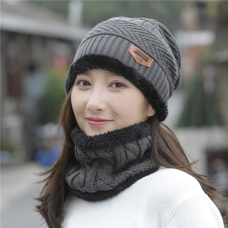 Πλεκτό χειμερινό σετ με ζεστή επένδυση από γούνα στο εσωτερικό.