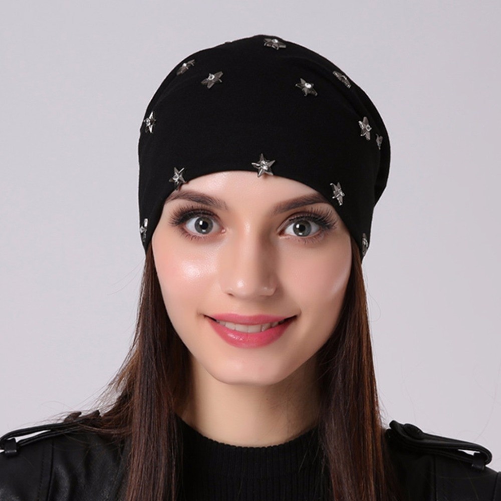 Γυναικεία καπέλο τύπου beanie με εφαρμογή αστεριών.