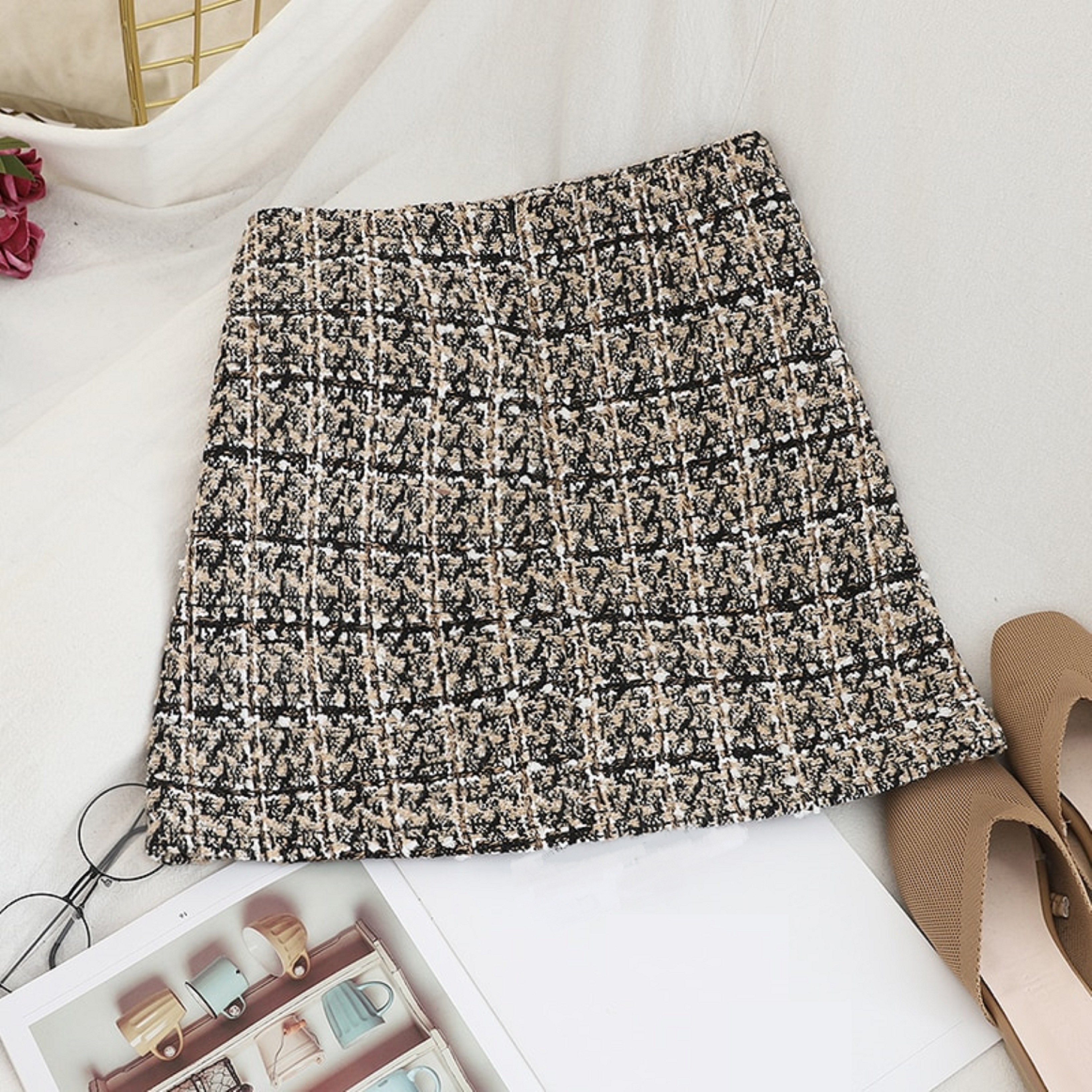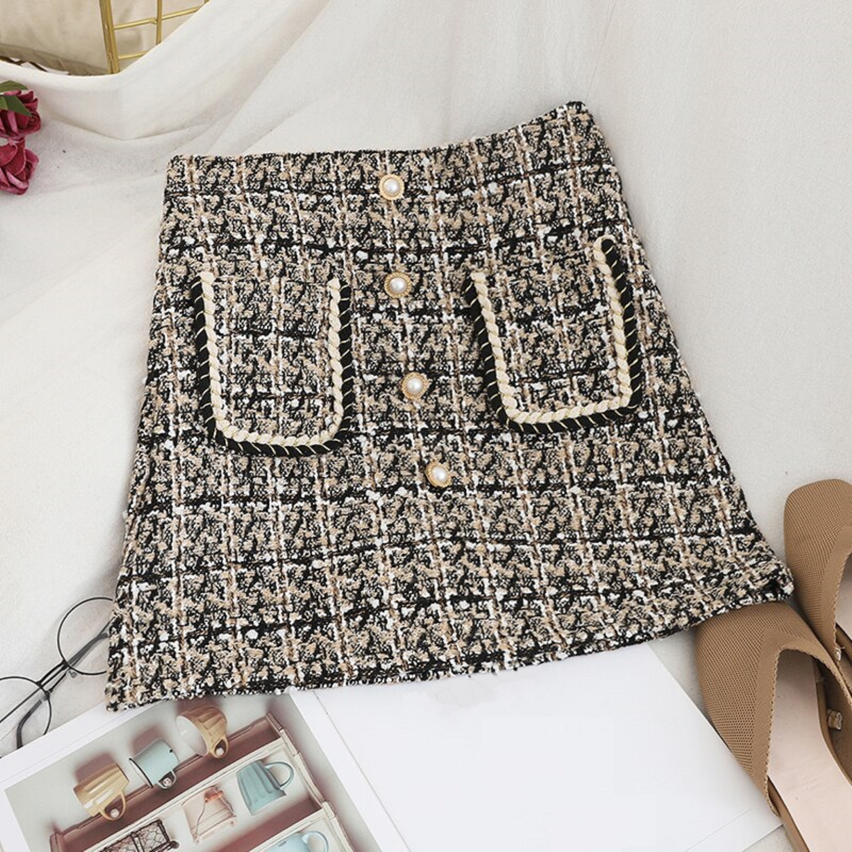 Γυναικεία καρό μίνι φούστα με τσέπες A1969