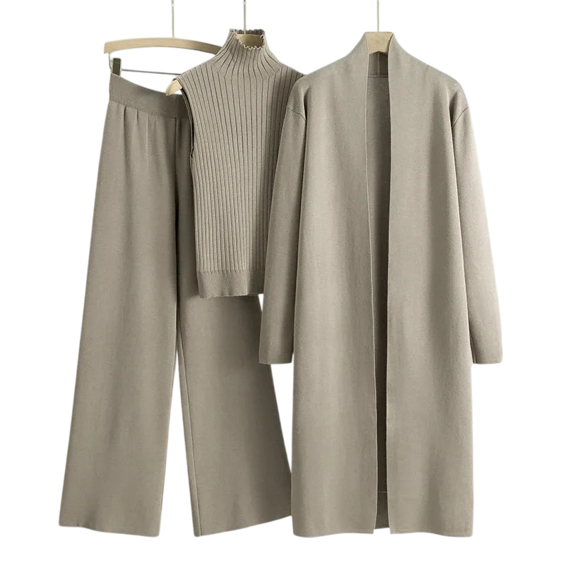 Αυτή η γυναικεία στολή είναι εξαιρετική επιλογή για κάθε γυναίκα που αναζητά μια κομψή και άνετη εμφάνιση για επίσημες περιστάσεις ή καθημερινή χρήση. Τα παντελόνια και το παλτό σε συνδυασμό με το τοπ δημιουργούν μια σοφιστικέ εμφάνιση, που παραμένει πολύ άνετη. Το υλικό από πολυεστέρα και βισκόζη είναι απαλό στην αφή, αναπνεύσιμο και προσαρμόσιμο, εξασφαλίζοντας άνεση ακόμα και μετά από πολλές ώρες χρήσης. Αυτό το μοντέρνο και κομψό σύνολο είναι ιδανικό για γυναίκες που θέλουν να είναι στυλάτες χωρίς να θυσιάζουν την άνεση.