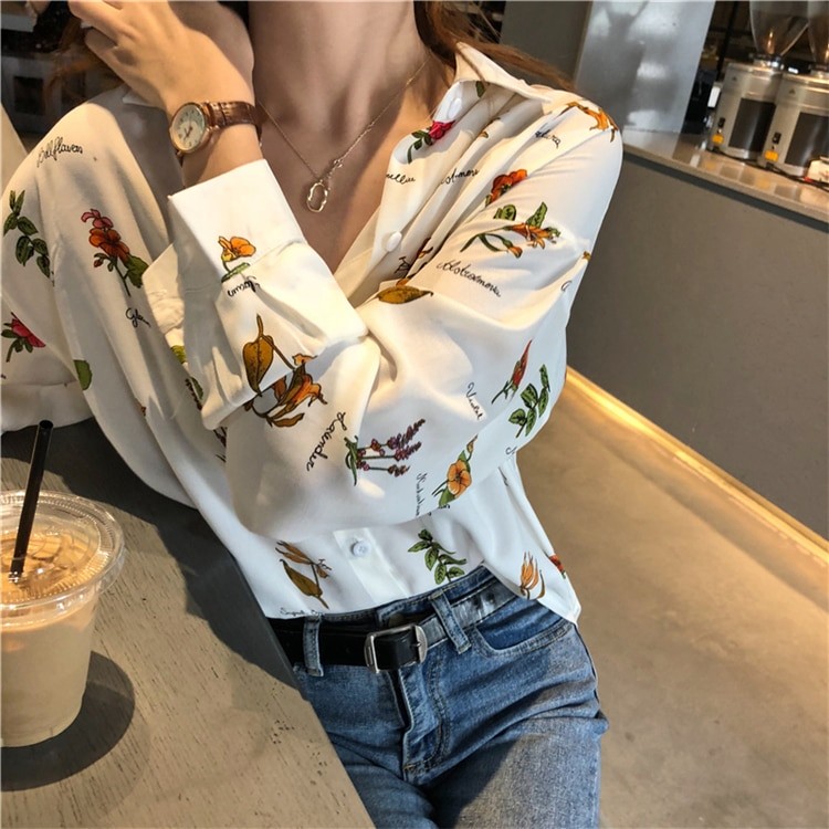 Γυναικεία λευκή πουκάμισο με εκτύπωση λουλουδιών