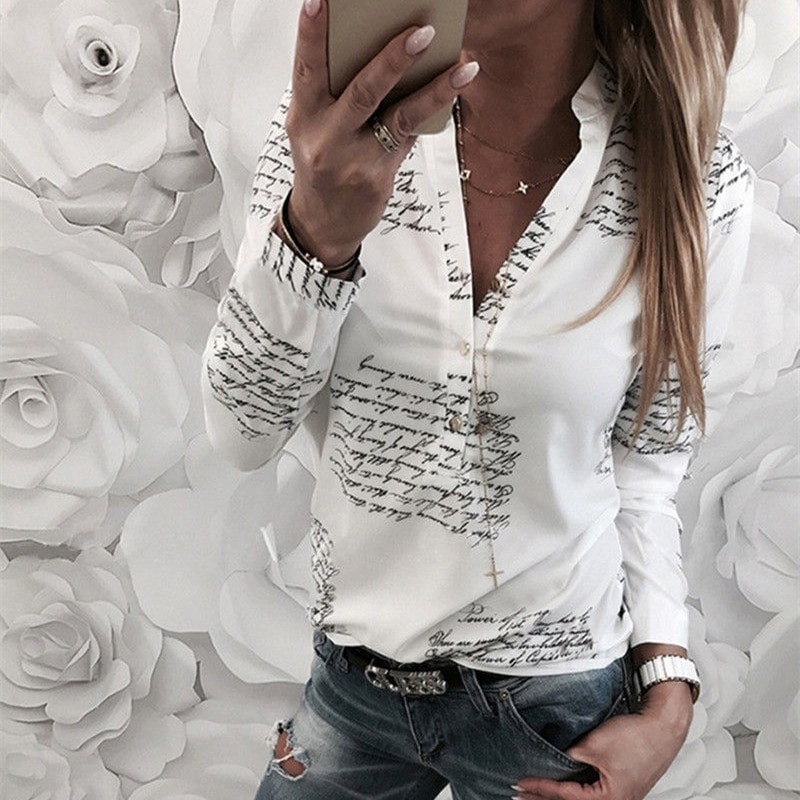 Πουκάμισο με μακριά μανίκια και μαύρα γράμματα.