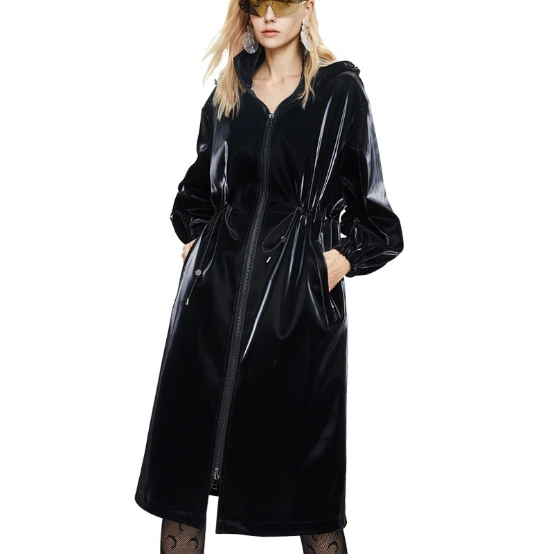 Γυναικεία μακριά δερμάτινη μπουφάν