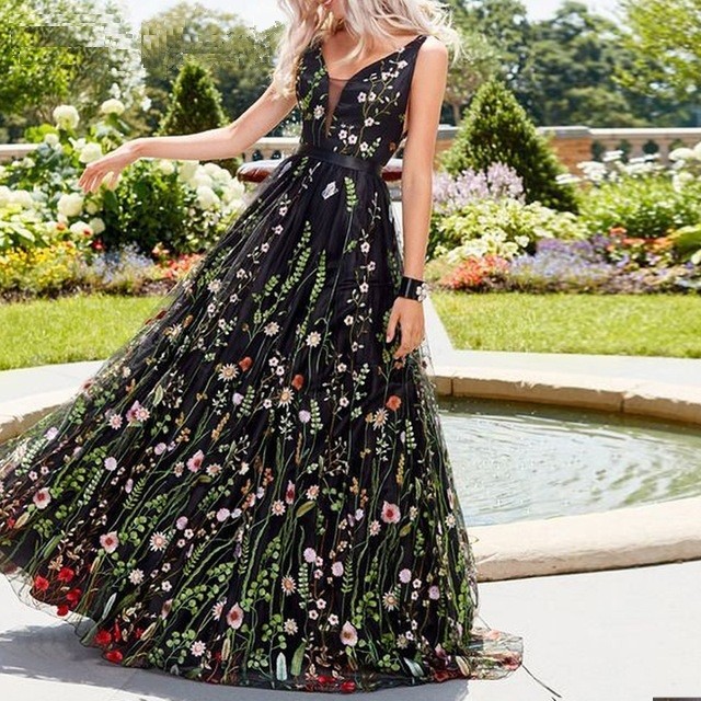 Μακριά φορέματα με ρομαντική λουλουδάτη κεντητική.