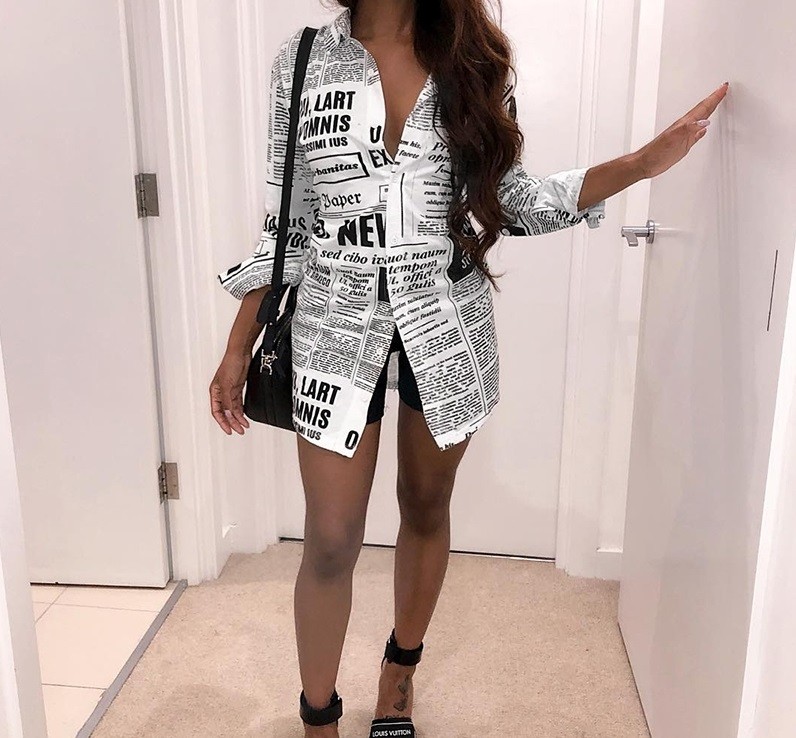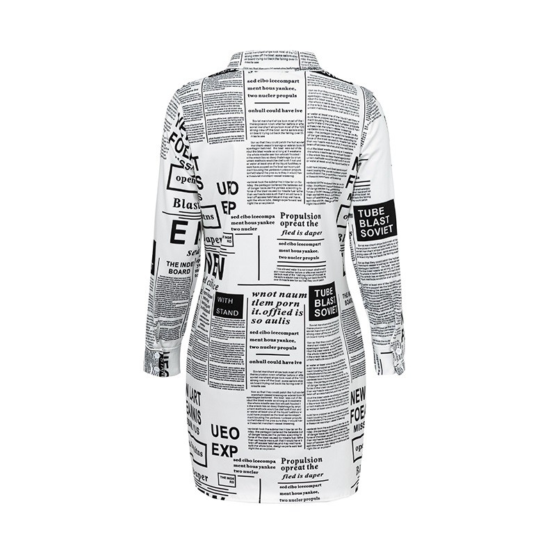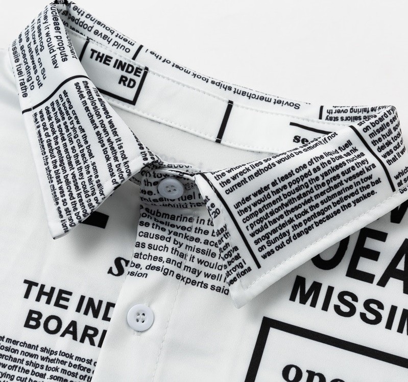 Η πουκαμίσα διακοσμείται με γράμματα που μοιάζουν με άρθρα σε εφημερίδες.