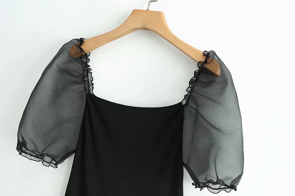 Γυναικεία μαύρη μπλούζα με διαφανή μανίκια