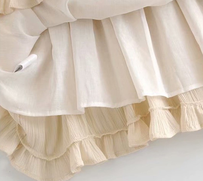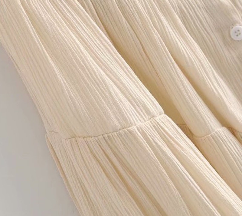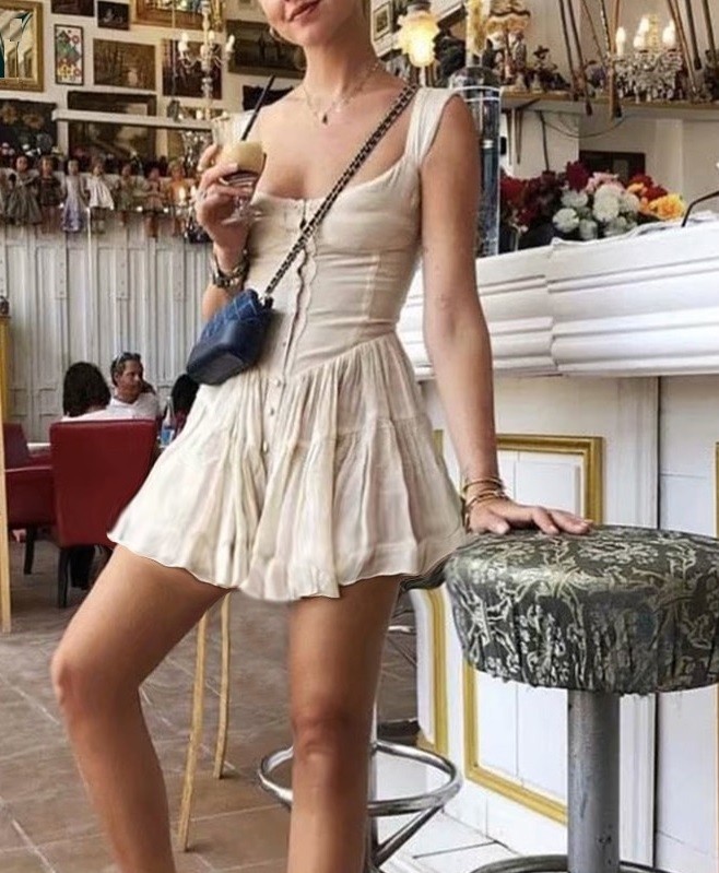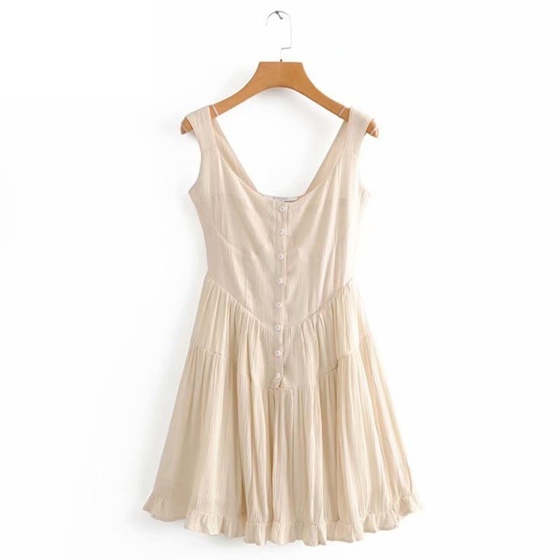 Ελαφρύ μίνι φόρεμα με τιράντες. Διακοσμημένο με κουμπιά και φρου φρου.
