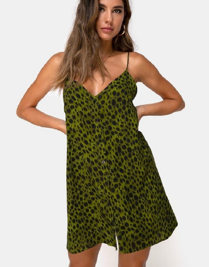 Γυναικεία καλοκαιρινά μίνι φορέματα με μοντέρνο λεοπάρ σχέδιο.