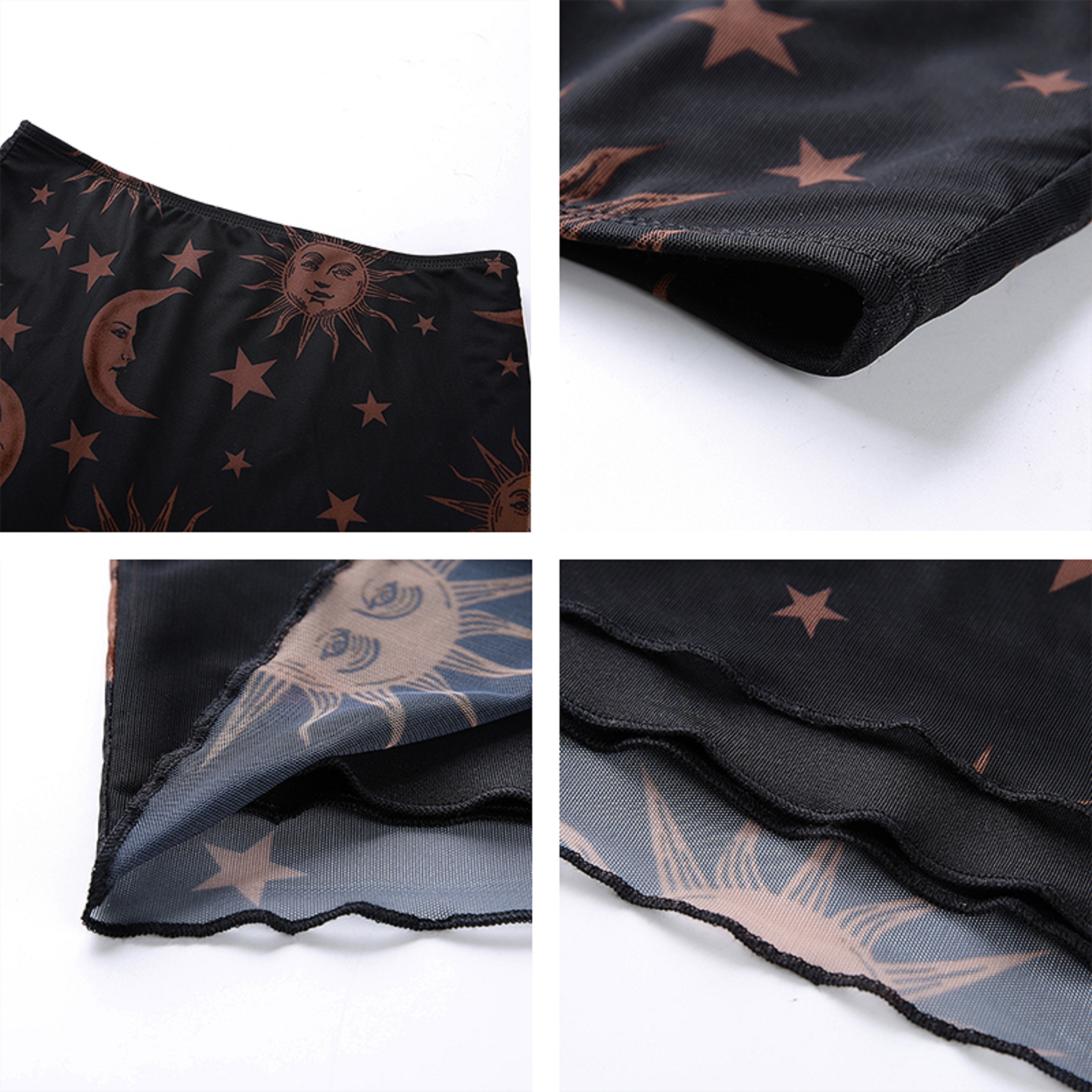 Γυναικεία μίνι φούστα με εκτύπωση Φεγγαριού και Ήλιου