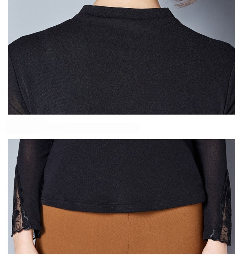Κομψή μπλούζα με μακριά μανίκια. Από το ντεκολτέ μέχρι τον λαιμό έχει διάφανο ύφασμα.