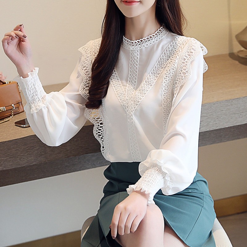 Η μπλούζα είναι διακοσμημένη διακριτικά με δαντέλα.