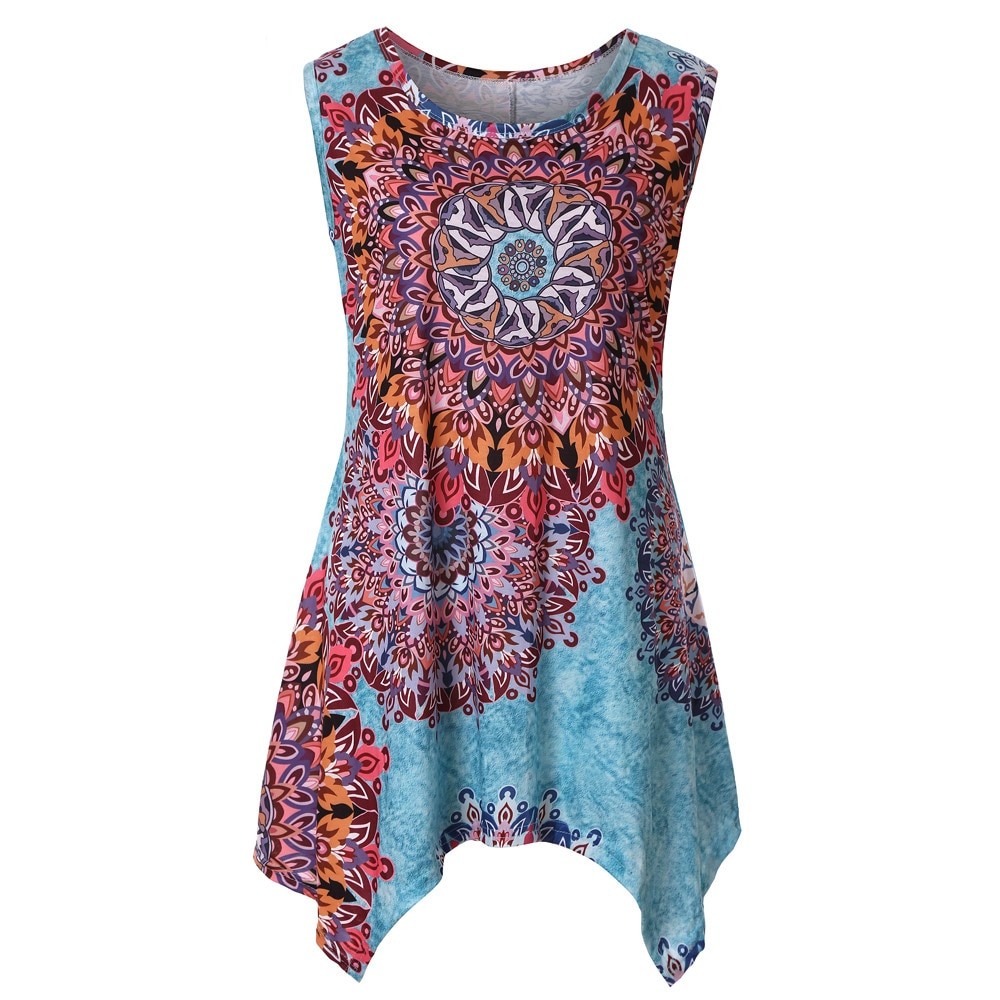Έχει αμάνικο κόψιμο και το τύπωμα της είναι πολύχρωμο.