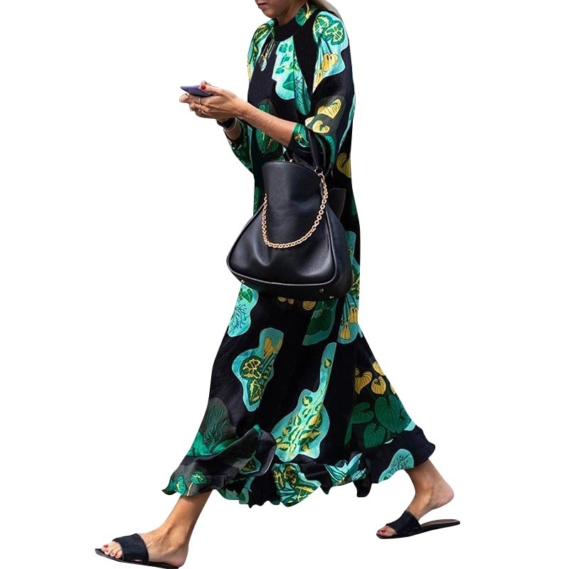Γυναικεία φόρεμα με μακριά μανίκια. Κομψό κολάρο και ασυνήθιστο μήκος.
