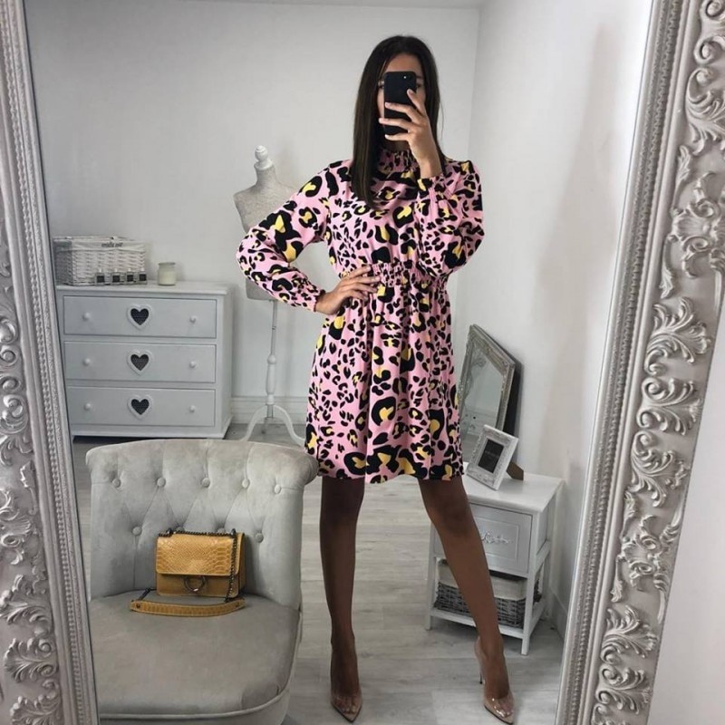 Γυναικεία φορέματα με μακριά μανίκια και έντονη εκτύπωση.