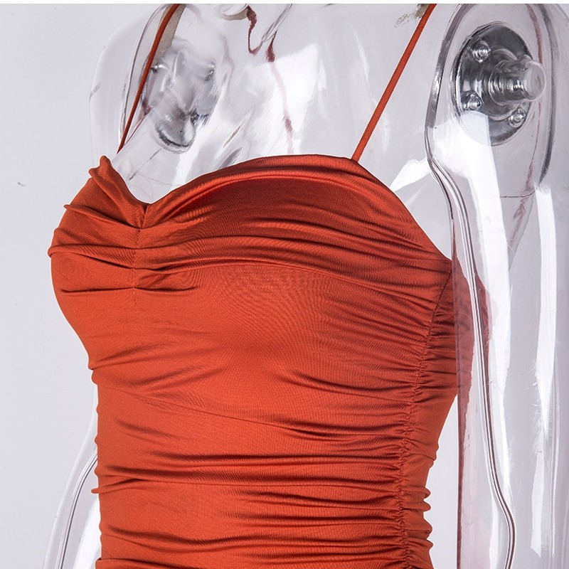 Ραμμένα φορέματα σε μήκος μίντι με λεπτές τιράντες.