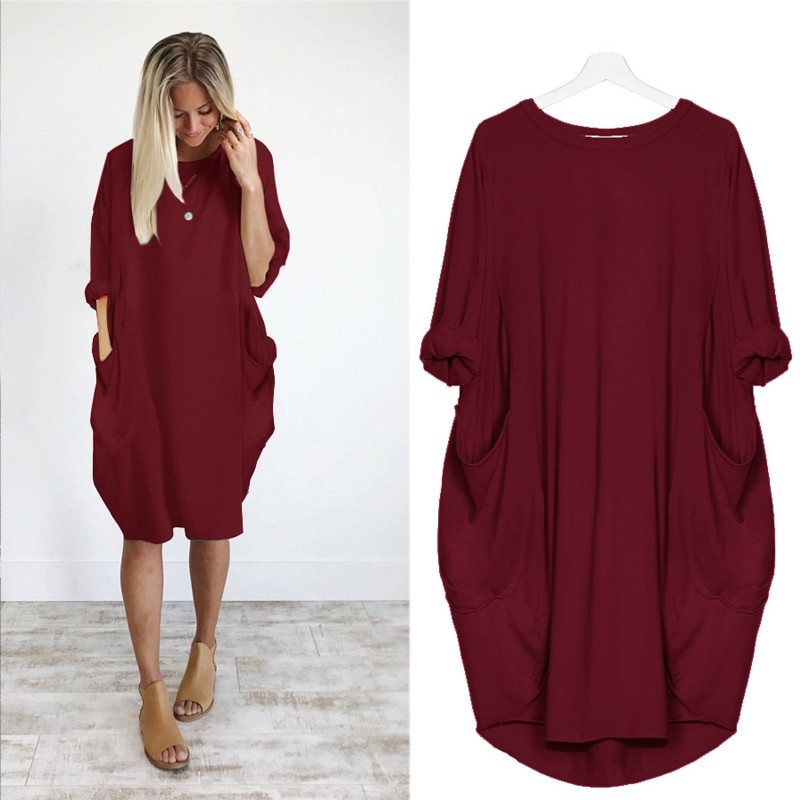 Γυναικεία φορέματα με τσέπες μονόχρωμα