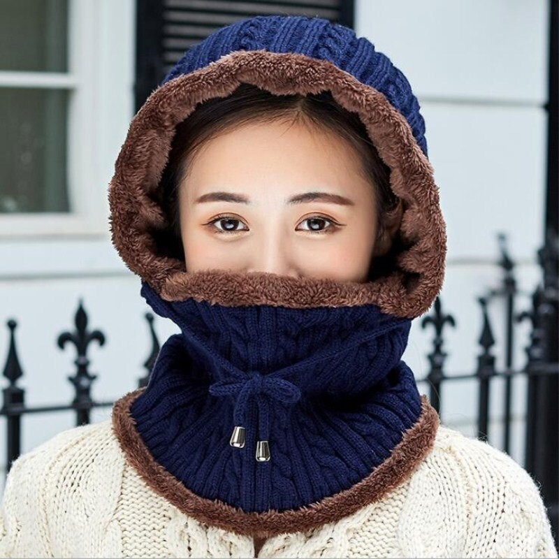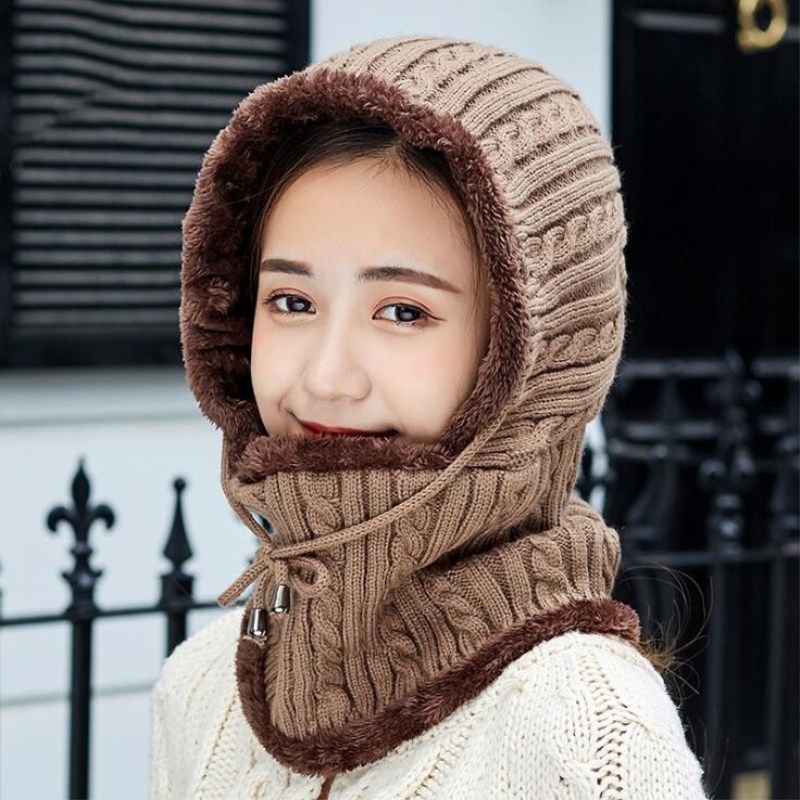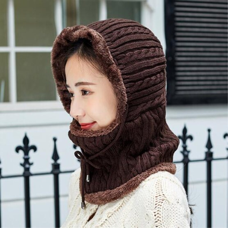 Ζεστή πλεκτή κουκούλα με γούνα μέσα.
