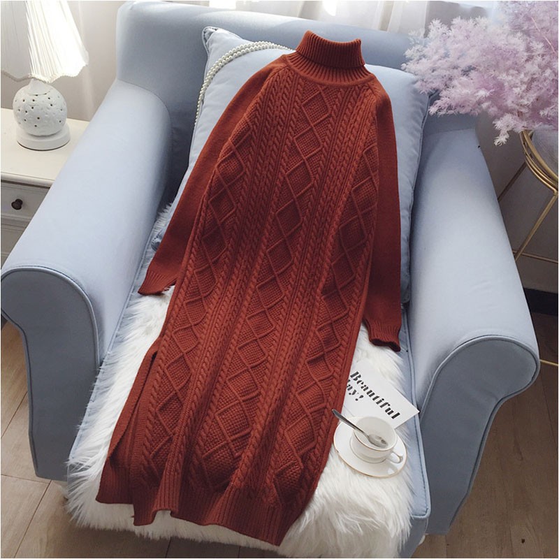 Γυναικεία φθινοπωρινά πουλόβερ φόρεμα με ρολό.