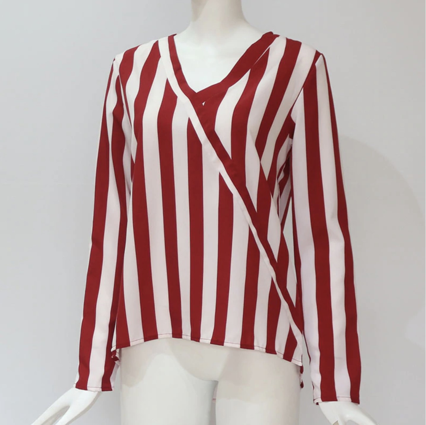 Γυναικεία ριγέ πουκάμισο με μακριά μανίκια.