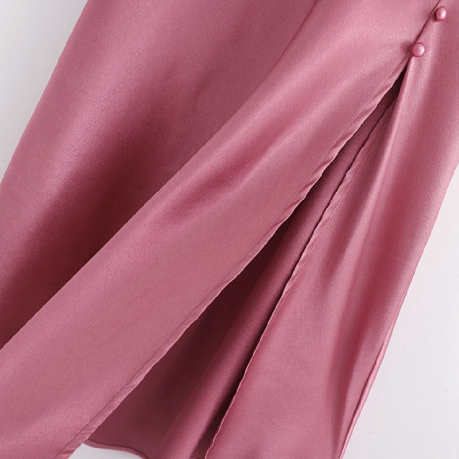 Γυναικεία σατέν φούστα με ψηλό σκίσιμο