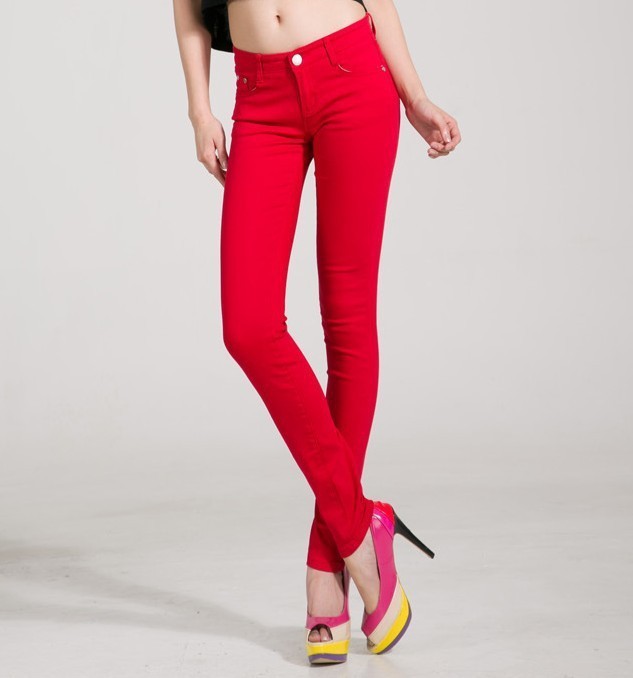 Κομψά γυναικεία τζιν σε κόκκινο χρώμα.