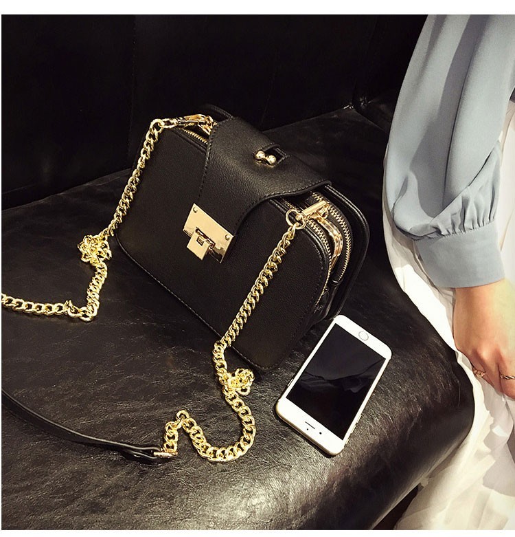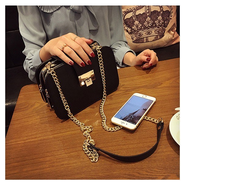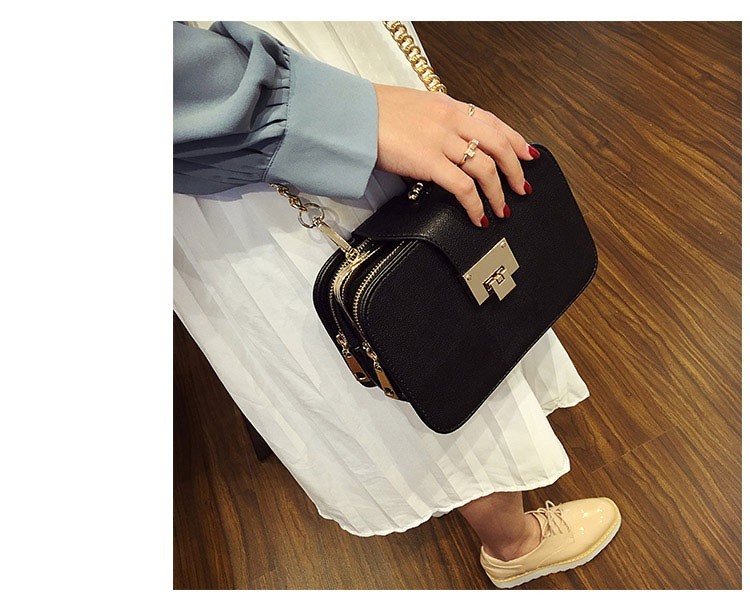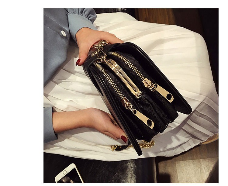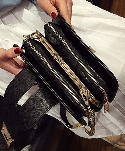 Αυτή η τσάντα έχει δύο πλαϊνές τσέπες με φερμουάρ και ανάμεσά τους βρίσκεται ένα πορτοφόλι, το οποίο έχει μεταλλικό κλείσιμο.