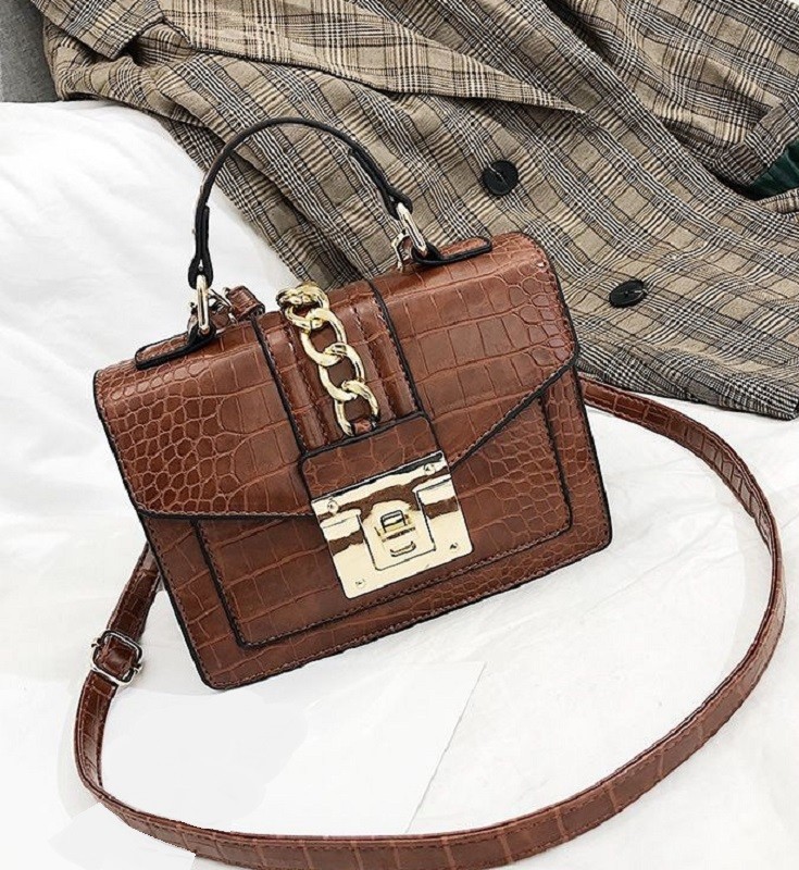 Γυναικεία τσάντα με μοτίβο από δέρμα κροκοδείλου J141