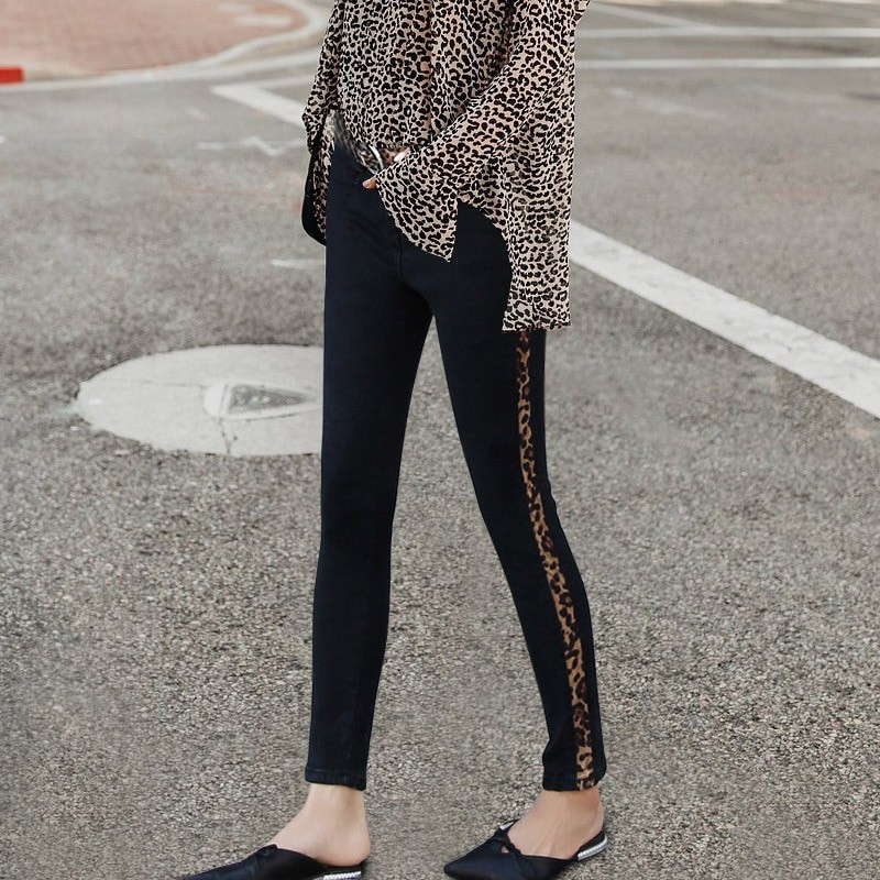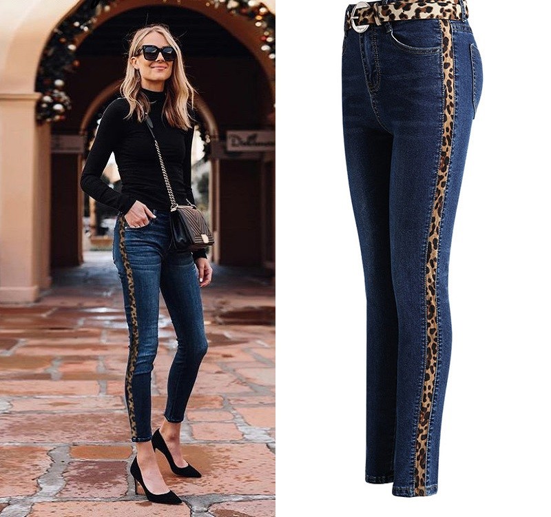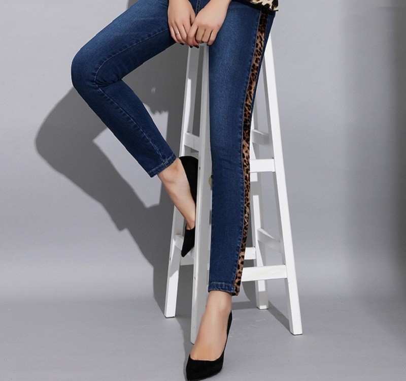 Γυναικεία τζιν με λεοπάρ ρίγα
