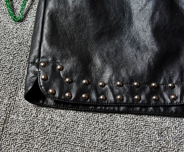 Δερμάτινες βερμούδες διακοσμημένες με τρουκς στο κάτω μέρος θα τις αγαπήσετε.