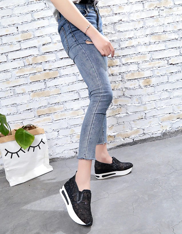 Γυναικείες δαντελένιες αθλητικές παπούτσια με παγιέτες J1118