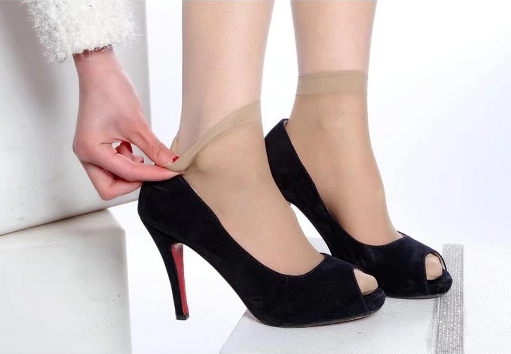 Γυναικείες διαφανείς μονόχρωμες κάλτσες είναι κατάλληλες για παπούτσια τύπου γόβας.
