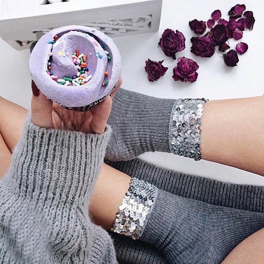Οι κάλτσες είναι διακοσμημένες με παγιέτες στην πάνω πλευρά. Οι παγιέτες στις κάλτσες ξεχωρίζουν όμορφα μέσα στα αθλητικά παπούτσια!