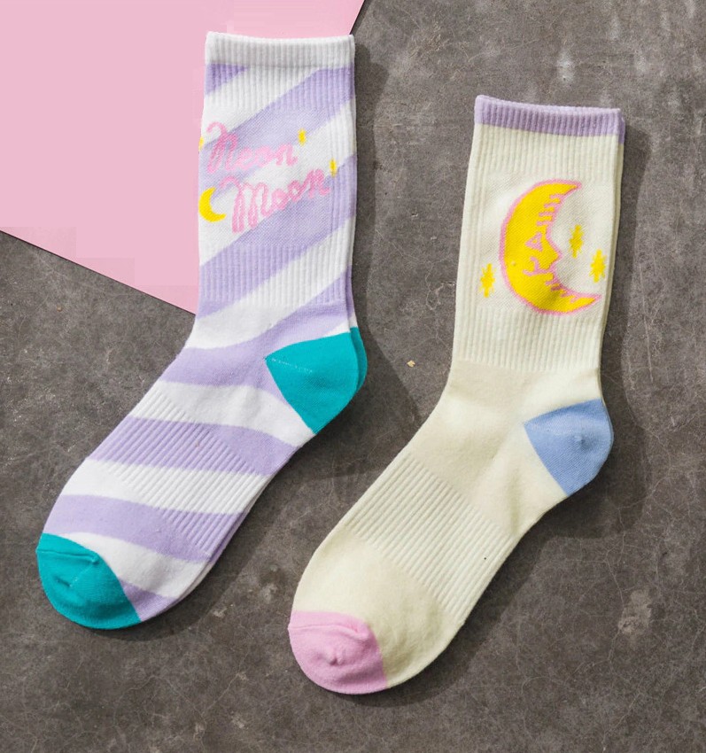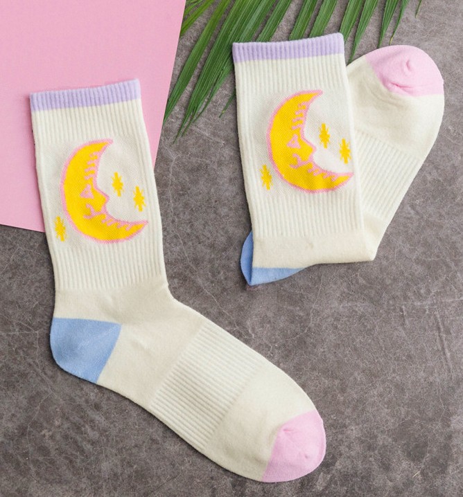 Κάλτσες σε παστέλ χρώματα με κεντημένο φεγγάρι που δημιουργούν μια πολύ γλυκιά αίσθηση!